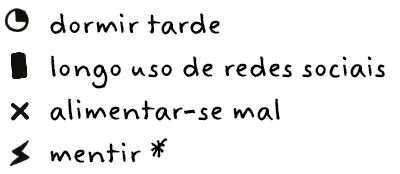 *Você pode criar um ícone para cada vez que mentir, mas não colocá-lo nas legendas, caso se sinta com risco de exposição. O importante é você conhecer seu ícone e usá-lo para poder monitorar, observar as necessidades por trás da ação e observar as consequências que suas ações lhe trazem.