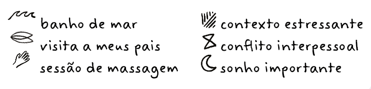 • Correlações: entre como me senti, os ciclos da natureza e o que eu fiz.