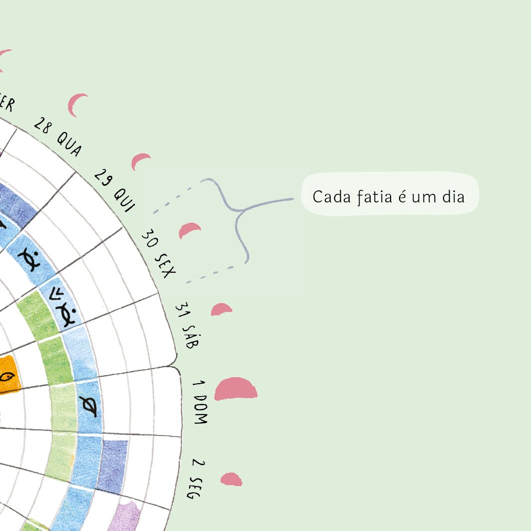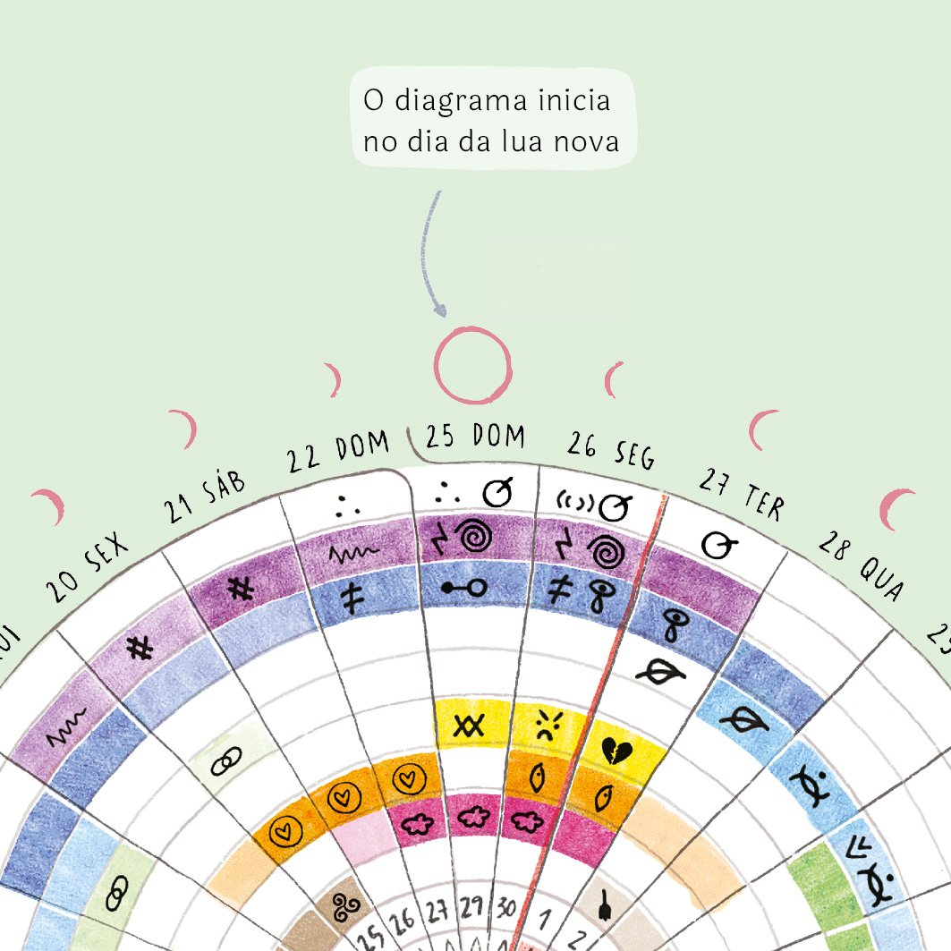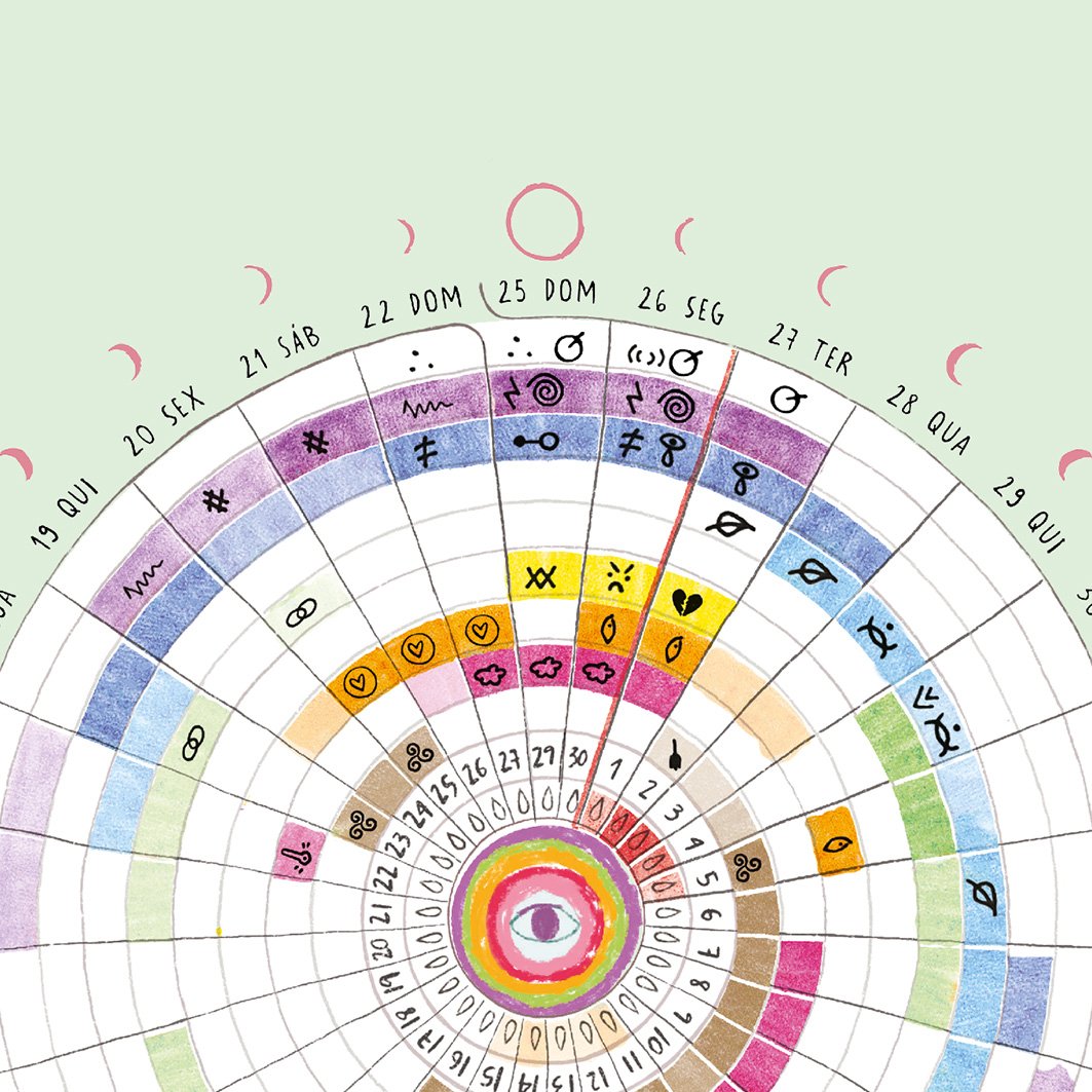 É um espaço para registro diário e sintético daquilo que vivemos e sentimos. Seu preenchimento regular forma um infográfico colorido que permite a rápida visualização de aspectos de nossas vidas em cada ciclo. Com isso, é possível ver o todo, perceber padrões e relações entre o que fizemos e o que sentimos e nos mantermos conectadas ao que é importante a cada momento. Pessoas que menstruam podem observar seu ciclo menstrual e perceber seus padrões e potencialidades.