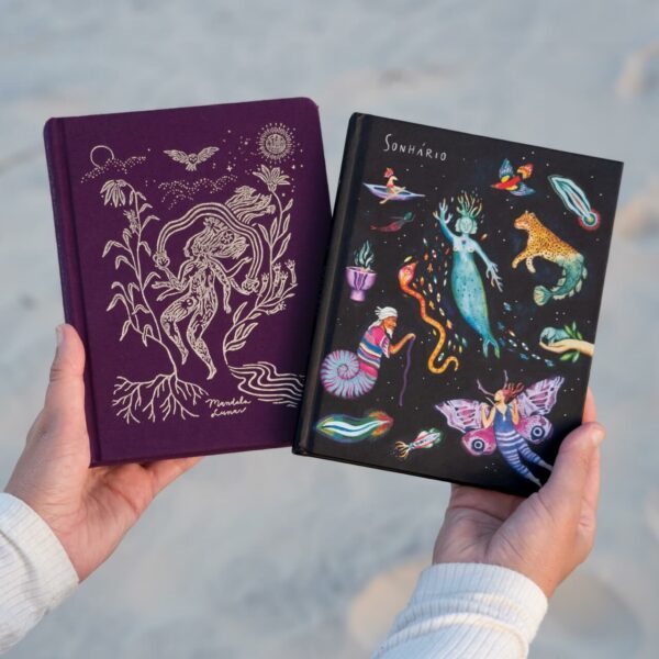 Cultivar um sonhário nos permite desenvolver ferramentas de expressão com o objetivo de adensar o autoconhecimento. Por isso, um sonhário deve ser um lugar livre para a experimentação. O convite da Mandala Lunar é para que você se aproxime das suas experiências oníricas da maneira como sentir mais liberdade e autenticidade, através das palavras ou da linguagem artística: tudo que couber em um caderno – ou tudo que puder começar nele.